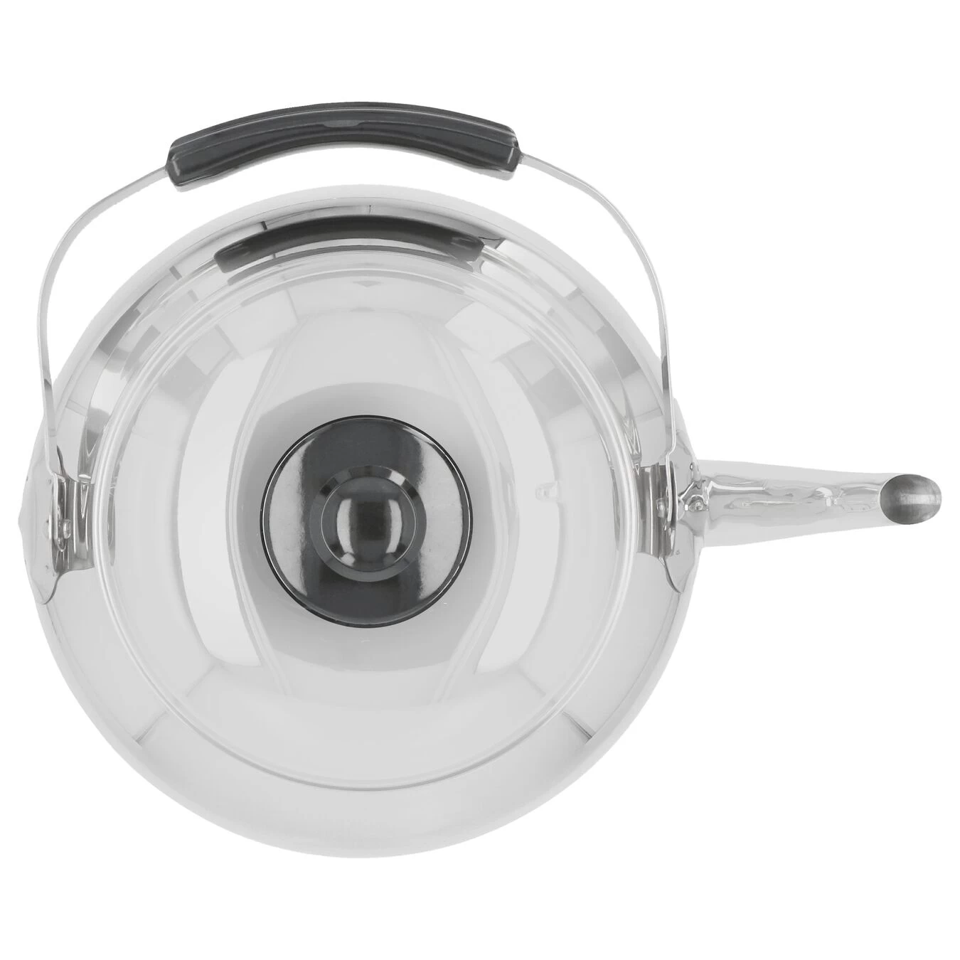 De klassieke waterketel in een tijdloze, roestvrijstalen extra large uitvoering. Degelijk en makkelijk hanteerbaar, ondanks zijn bijzonder ruime inhoud: 6 liter. De greep en de dekseldop zijn uitgevoerd van bakeliet, een onverwoestbaar materiaal dat lang koel blijft. Van deze grote ketel heb je jarenlang plezier, op elk fornuis, inclusief inductie. Thuis, je vakantieverblijf, je praktijkruimte, atelier, op kantoor …