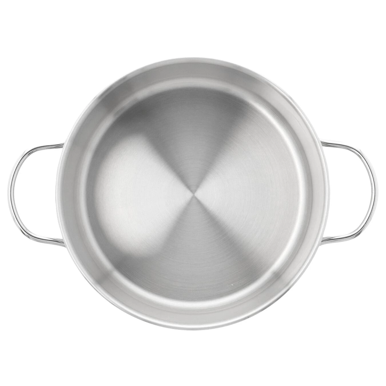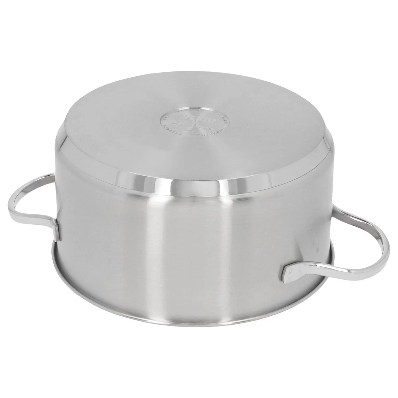 Dit kwalitatieve kookgerei doet niet alleen prima jouw ding, het ziet er ook goed uit. De kookpan – hier met doorsnede 20 cm – is mooi mat gepolijst terwijl het deksel schitterend glanst.