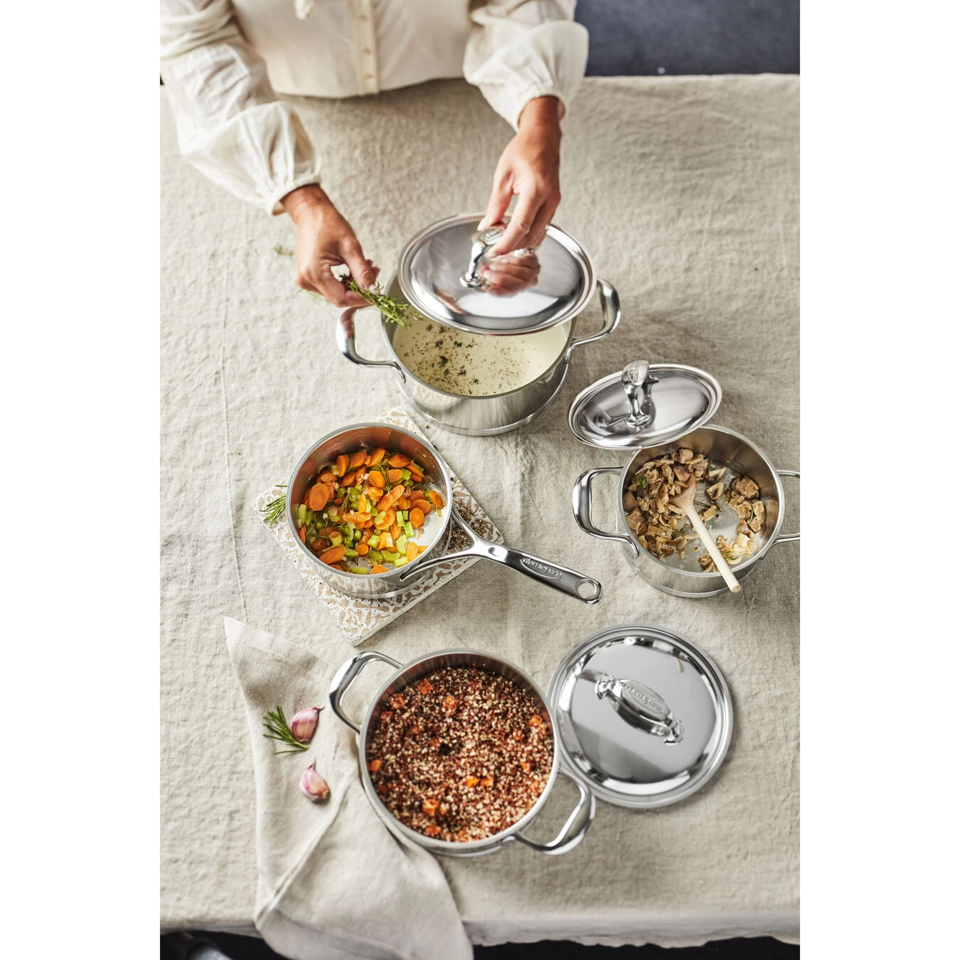 De Atlantis 7 steelpan is onmisbaar in je keuken. Voor allerlei toepassingen maar vooral voor het bereiden van sauzen en het efficiënt beetgaar koken van groenten. De steelpan is ook ideaal voor het snel inkoken van bouillons, fonds en basissauzen. Ook voor het smelten van boter en om eieren of vis te pocheren staat de steelpan voor je klaar. Onze steelpan kan zelfs probleemloos in de oven, als je een saus warm wil houden tot de rest van je creatie klaar is.