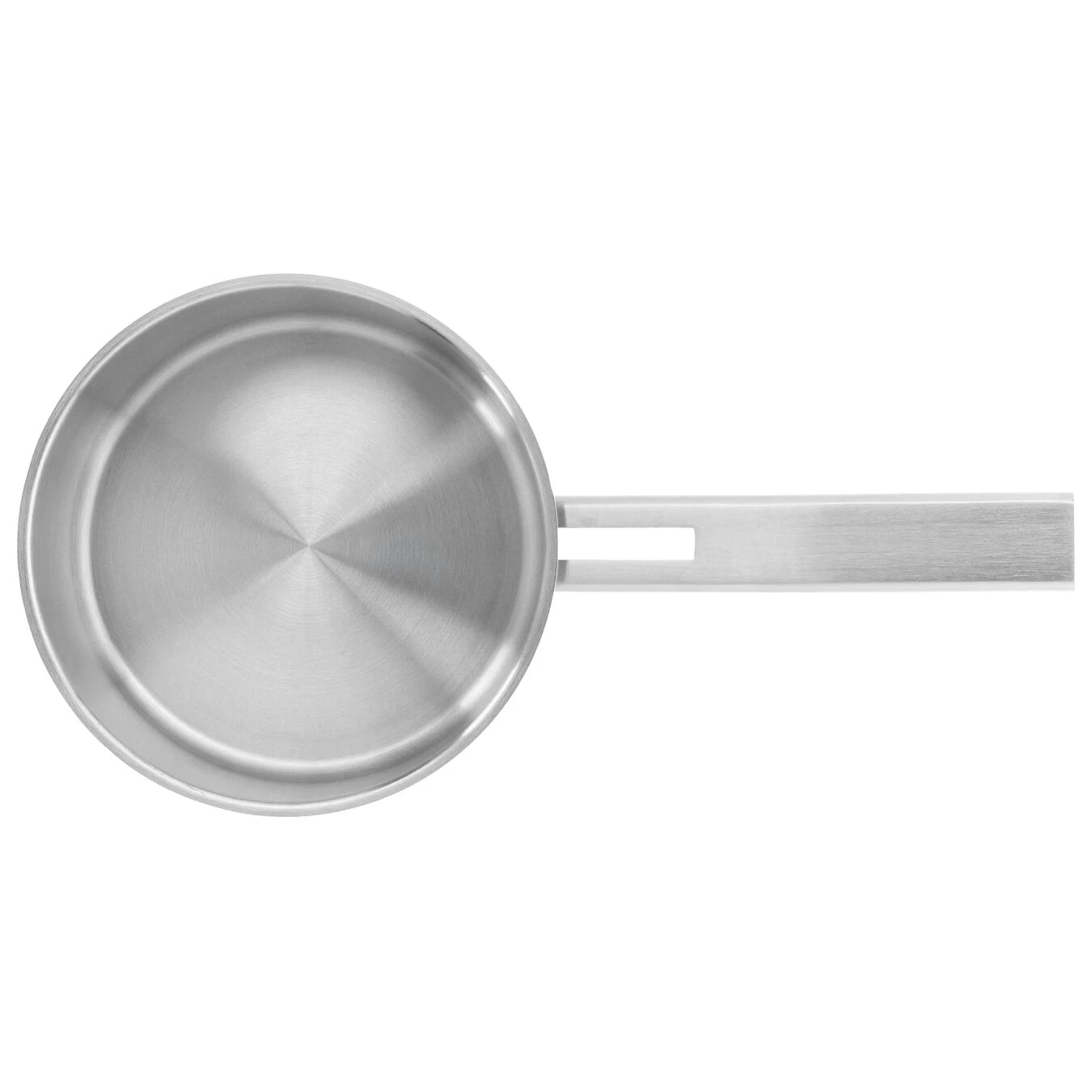 Deze gestileerde John Pawson 7 steelpan met 18 cm diameter kan ook probleemloos in de oven, als je een saus warm wil houden tot de rest van je creatie klaar is.
