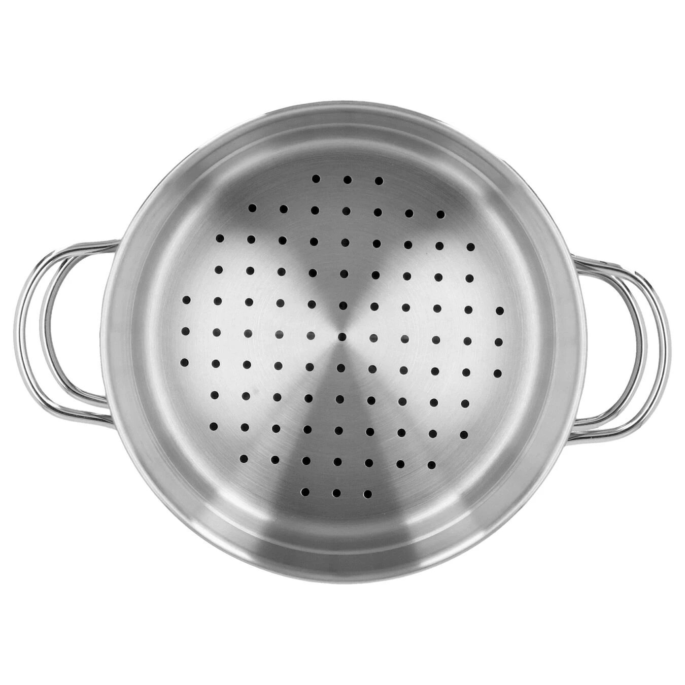 Stomen is gezond en eenvoudig. Je hebt geen vetstof nodig en bewaart smaak en vitamines maximaal. Je werkt met puur water of met een rijke bouillon vol kruiden. Groenten blijven lekker knapperig. Vis en kip worden boterzacht zonder uit elkaar te vallen. Geen plek voor een stoomoven of geen zin om erin te investeren? Dan hebben we hier de oplossing voor jou, in degelijk roestvrij staal. Een ruime Resto 3 kookpan die de warmte goed verdeelt zodat de vloeistof snel kookt en goed haar stoom vrijgeeft. Plus een handige stoominzet, tevens vergiet, die de ingrediënten alle ruimte geeft om mooi gelijkmatig te stomen. Dat kan op elke kookplaat, ook inductie. Het perfect passende deksel, ook in roestvrij staal, is blinkend. Een schitterend contrast met de matte pan en inzet. Met dit kwalitatieve duo uit de Resto 3 serie ben je verzekerd van jarenlang stoomplezier, zonder een volledige oven op te hoeven warmen. Ook de afwas is in een handomdraai gebeurd.