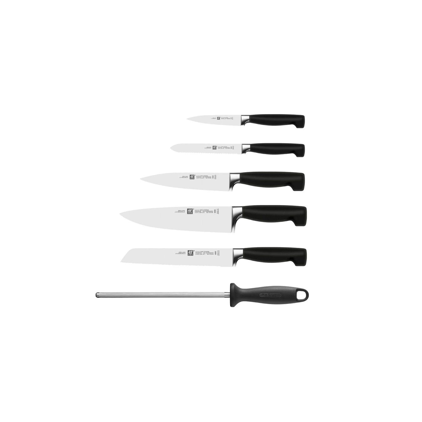 Het exclusieve bamboe messenblok van ZWILLING is een veelzijdige, zevendelige basistool voor iedere hobbykok en professionele chef. Chef-koks die de meest uitdagende gerechten voor de kiezen krijgen, vallen als een blok voor de kwaliteit, de veelzijdigheid en de nauwkeurigheid van het SIGMAFORGE mes, dat uit één stuk staal vervaardigd werd. Fruit, groenten, vlees, vis en nog zoveel meer zijn geen partij voor deze verfijnde, stalen lemmeten. Die zijn bovendien bestand tegen corrosie, vlijmscherp en flexibel, zelfs wanneer u ze elke dag gebruikt. De beste snijeigenschappen en comfortabel gebruiksgemak: daar staat de Four Star reeks bekend om. Het bamboe messenblok bevat vijf messen van verschillende lengte en met verschillende functies. Een schil- en garneermes, een koksmes, een vleesmes, een broodmes en een universeel mes komen op elk moment van pas. Met de meegeleverde slijpsteen kunt u zelf uw lemmeten slijpen. De doorlopende plastic grepen liggen goed in de hand en helpen u in een handomdraai voedingswaren te versnijden. De naadloze overgang tussen steun en lemmet komt het gebruiksgemak alleen maar ten goede. Met dit zevendelige Four Star messenblok haalt u alles in huis om uw favoriete gerechten te bereiden en nieuwe recepten te ontdekken.
