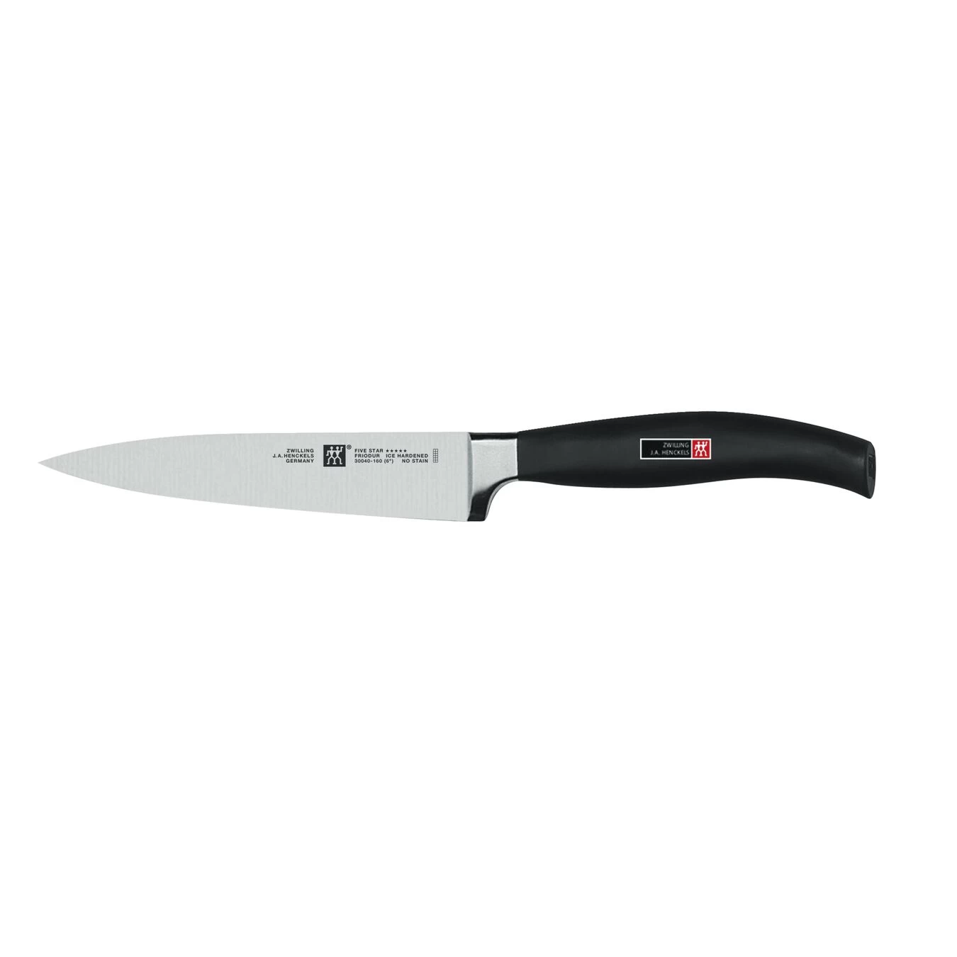 De Five Star messen beschikken over een unieke greep die de contouren van uw hand volgen. Het resultaat is een meesterwerk in veiligheid, ergonomie en comfort. De stevige, evenwichtige lemmeten van de Five Star messen werden vervaardigd uit één stuk roestvrij staal met een hoog koolstofgehalte. Het ijsgeharde FRIODUR lemmet werd met de hand geslepen en gepolijst voor vlijmscherpe resultaten. Dit messenblok bevat een schilmes van 10 cm, een universeel mes van 13 cm, een vleesmes van 16 cm, een koksmes van 20 cm, een broodmes van 20 cm en een slijpstaaf van 23 cm. Het messenblok is gemaakt van bamboe.